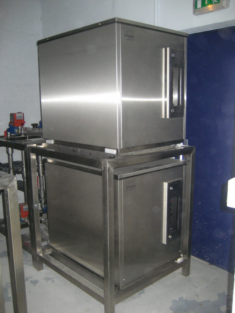 Deux de ces quatre PAC produisent 2m3/h d’ECS à 6°C en instantané. En complément, un tampon de 1000 litres est installé pour assurer les pics de consommation.